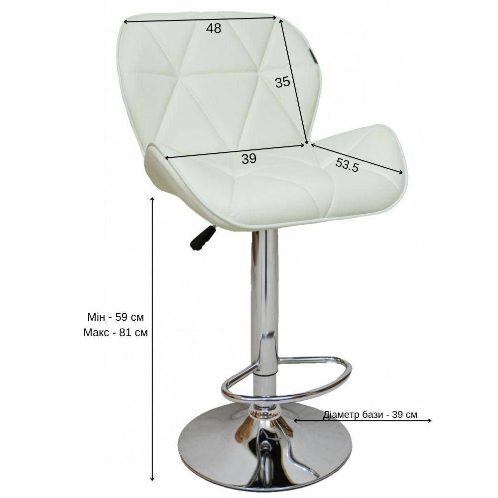 Механизм: Стул оснащен надёжным поворотно-подъёмным механизмом. Посадочная высота регулируется, от 65 до 85 см. Рычаг находится под сиденьем. Сиденье крутится на 360 градусов, что очень удобно.