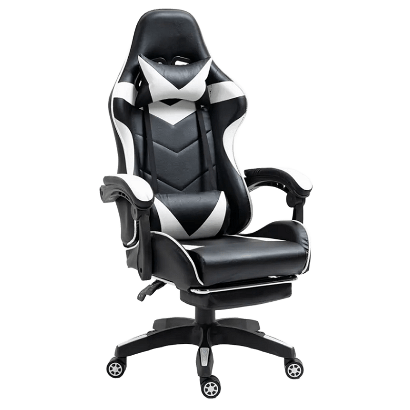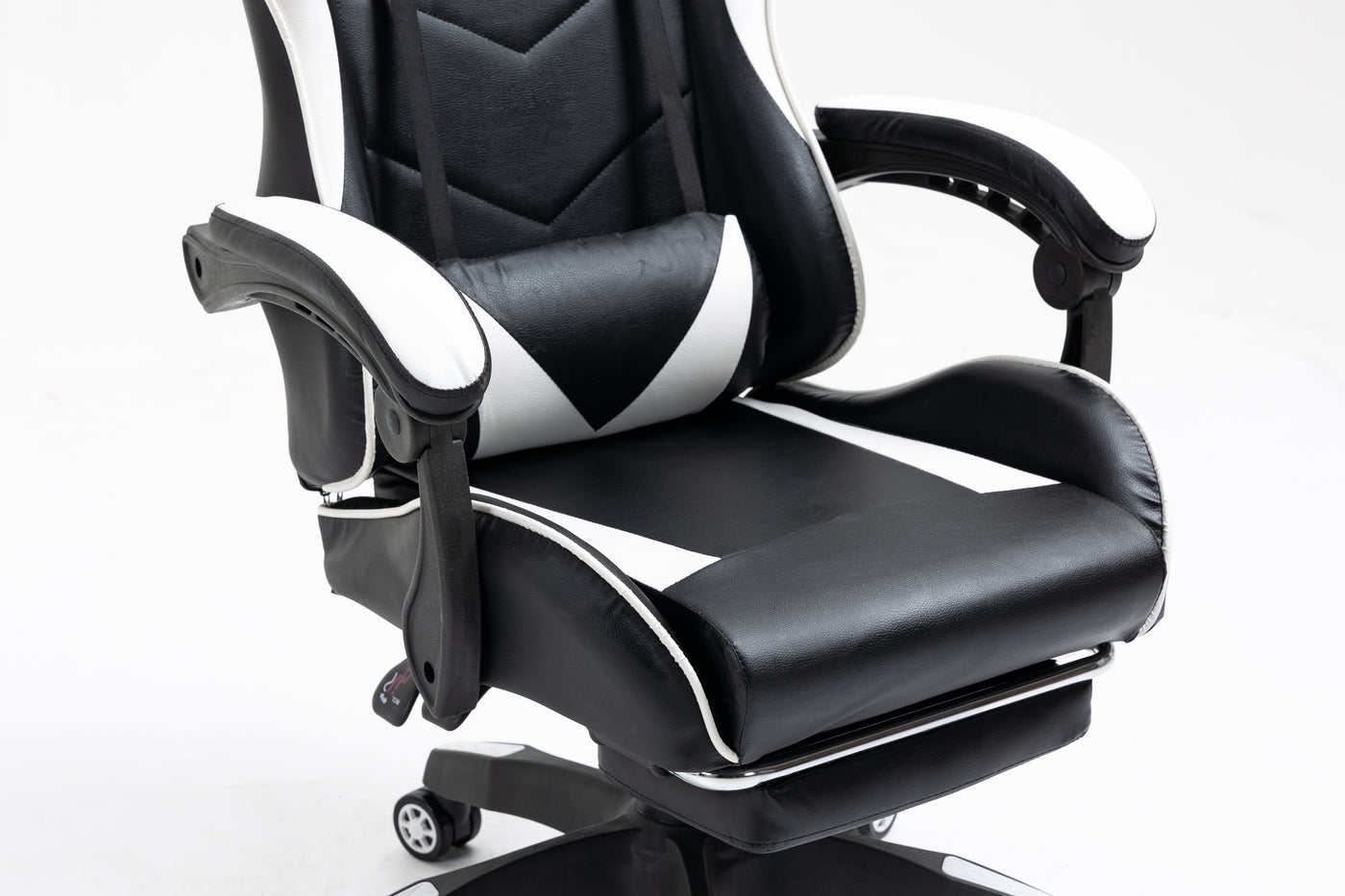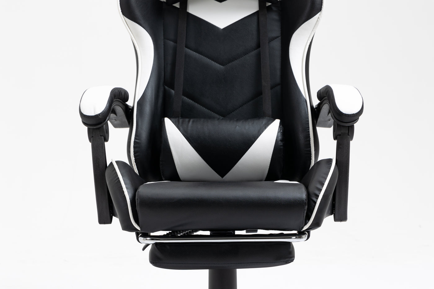 GAMING CUBE GT Крісло геймерське чорно-біле з підставкою для ніг