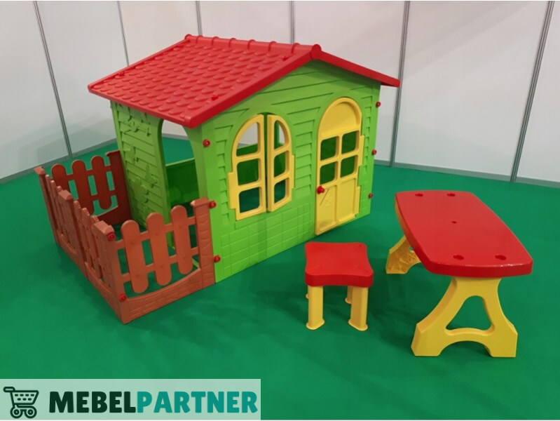 Красочный садовый домик от MochToys предназначен для детей от 1 года. Он имеет открывающиеся двери и окна, а также красочные декоративные наклейки. В доме есть сад, окруженный элегантным забором, предлагающий дополнительное пространство для игр. Компактных размеров достаточно для игры 2-3 детям.