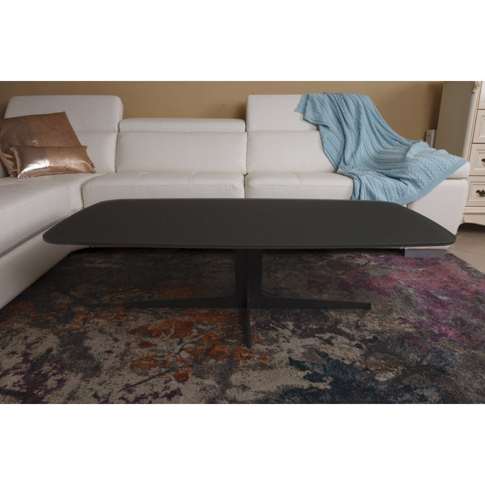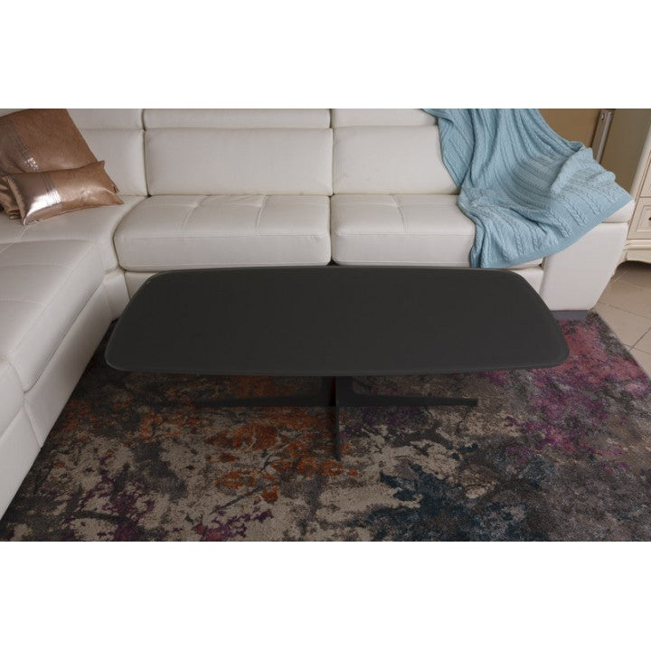 Столешница имеет прямоугольную форму со слегка закругленными краями. Столешница сделана из матового закалённого стекла толщиной 12 мм, цвет - графит.