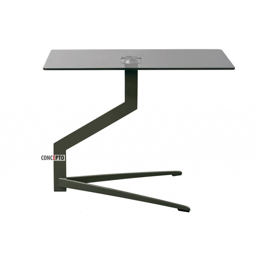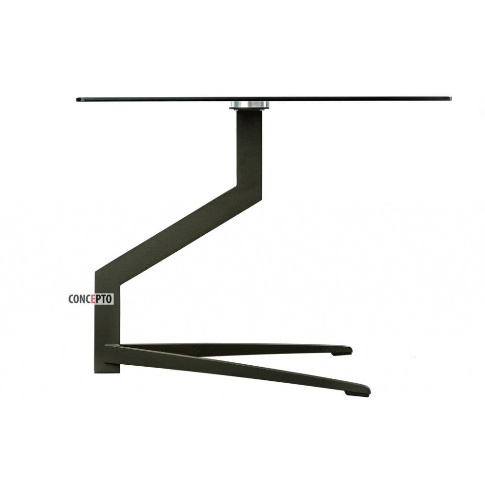 Ножка необычной геометрической формы сделана из нержавеющей стали и окрашена в тёмно-серый цвет.
