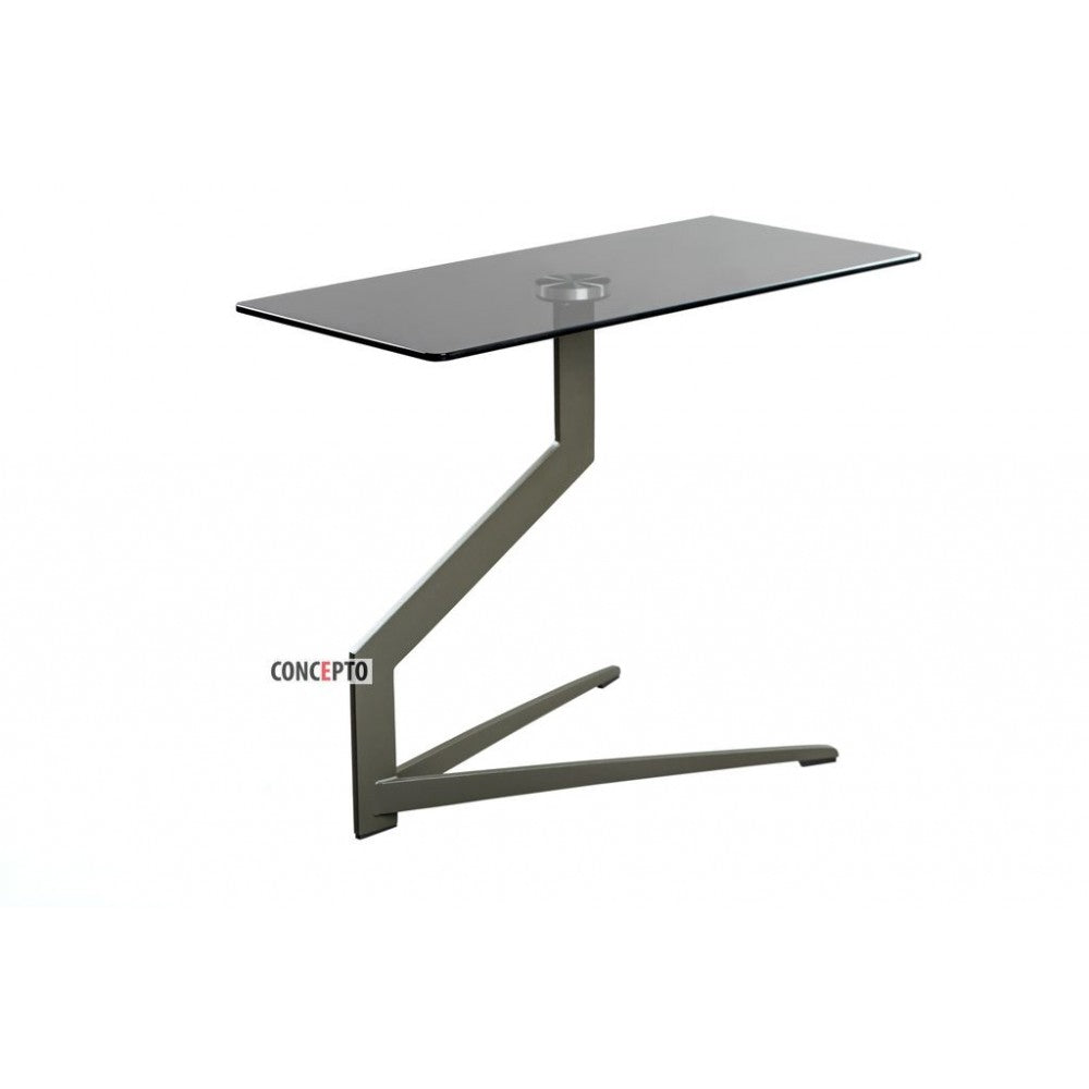 Столешница приставного столика сделана из каленого стекла, тонированного в дымчатый серый оттенок. Стекло прозрачное. Толщина стекла 8 мм. Даже если стекло разобьётся, осколки не нанесут серьёзных травм, так как калёное стекло рассыпается на осколки с тупыми гранями.