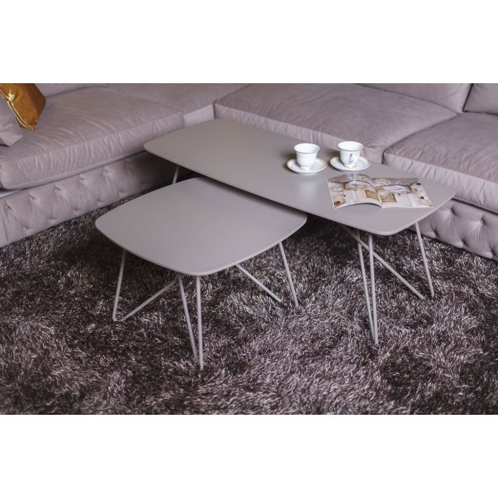 Прочная база столика сделана из металла, окрашенного под цвет столешницы. Ножки имеют необычную форму.