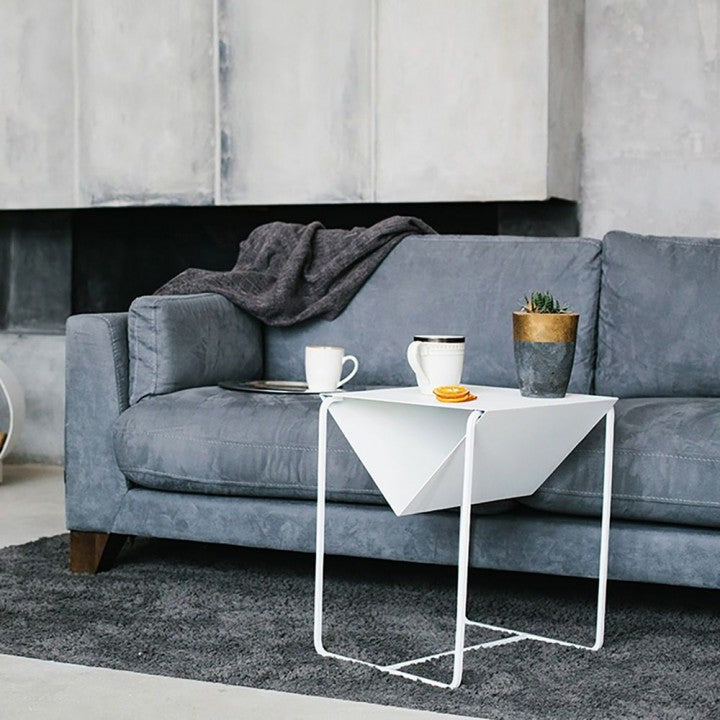 Столешница имеет вид перевернутой пирамиды, благодаря чему есть небольшое место для хранения вещей - газет, книг, журналов, пультов и гаджетов.