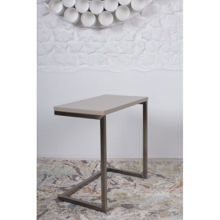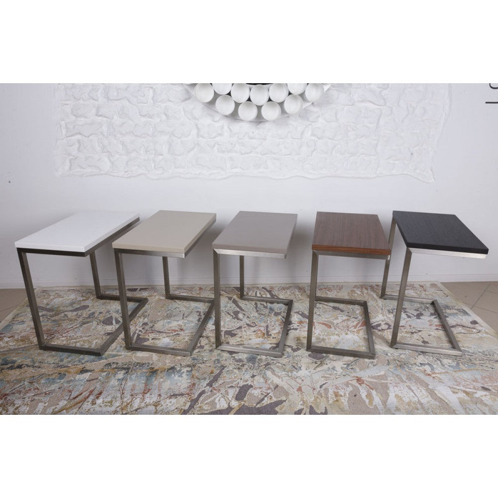 База столика сделана из сатинированной нержавеющей стали, поверхность матовая.
