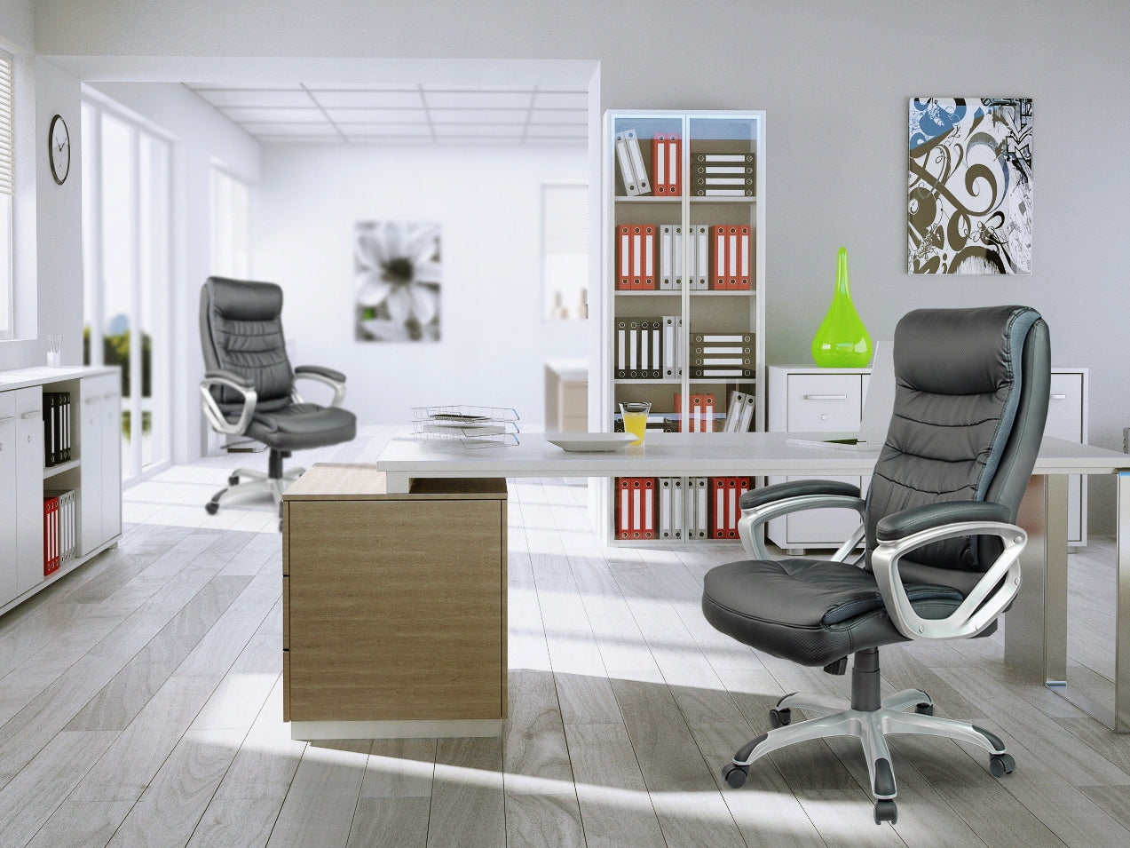 - это стильное, универсальное кресло, которое идеально подойдет для офиса или дома. Дизайн кресла стильный, он удовлетворительный. Стильный характер креслу предоставляет ему черную кожу, которая подчеркивает элегантную белую нитью.