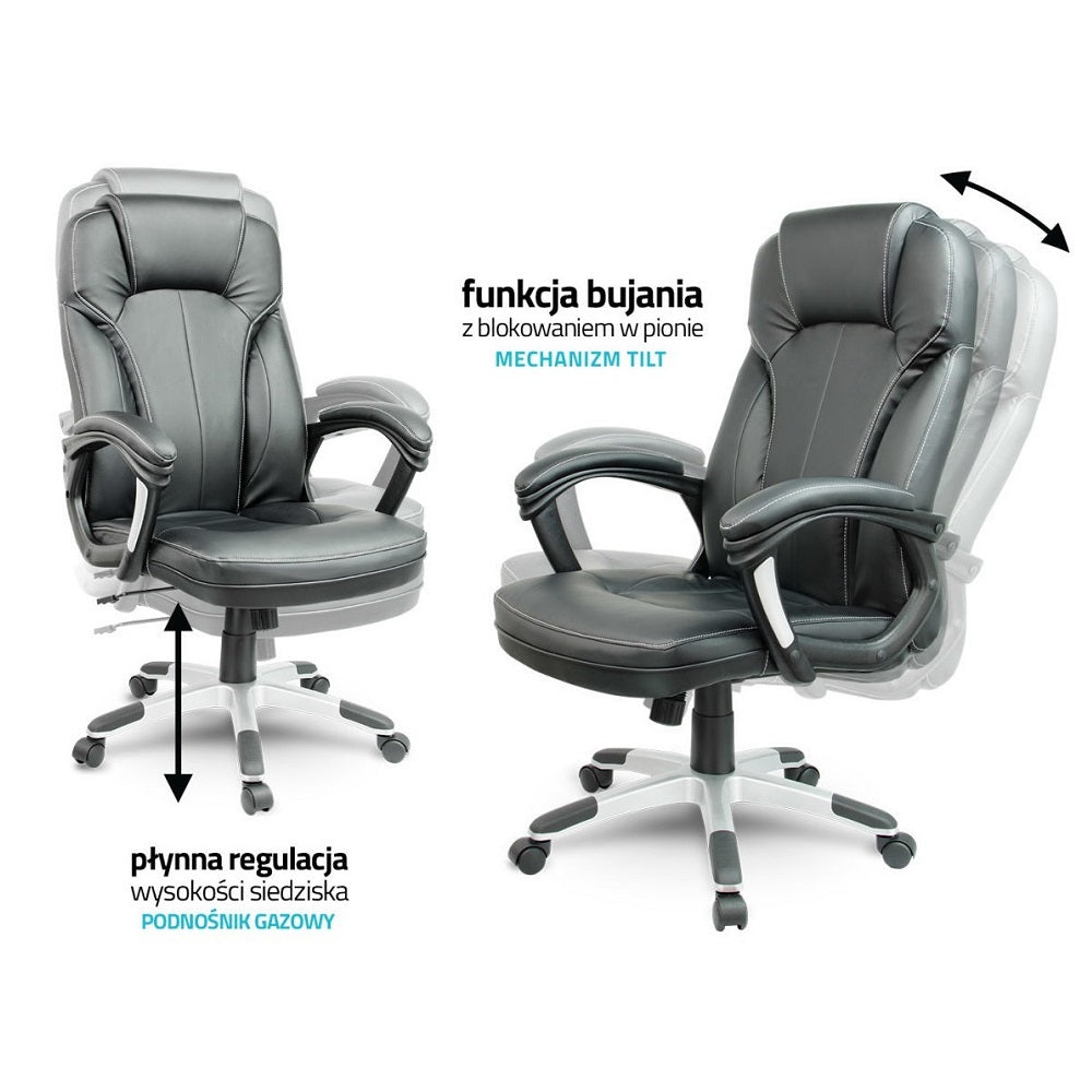 - это стильное, универсальное кресло, которое идеально подойдет для офиса или дома. Дизайн кресла стильный, он удовлетворительный. Стильный характер креслу предоставляет ему черную кожу, которая подчеркивает элегантную белую нитью.