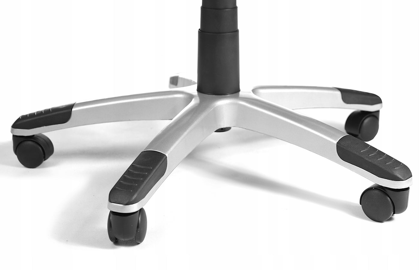 Крестовина.  Крестовина изготовлена ​​из серебристого пластика. На дугообразных лучах крестовины установлены защитные декоративные накладки - внешний вид крестовины обеспечен надёжной защитой на долгие годы. Роликовые опоры обеспечат креслу открытой мобильностью.