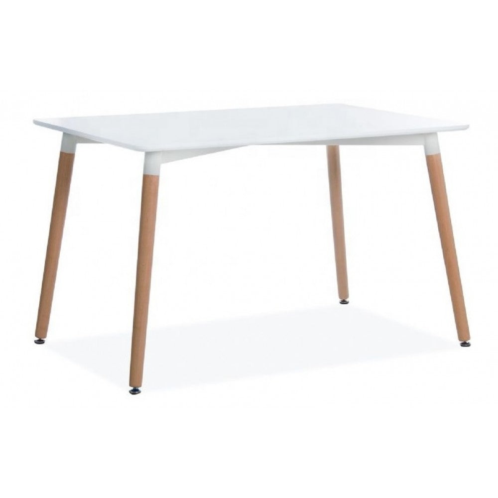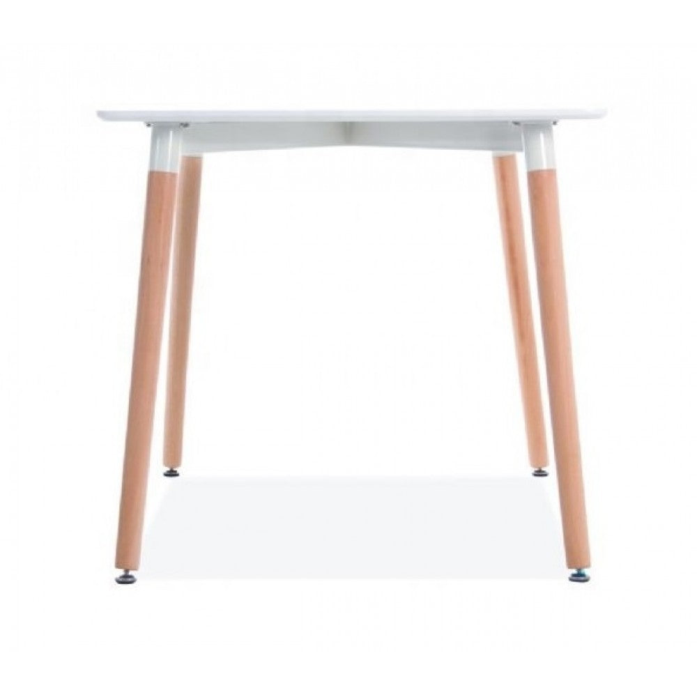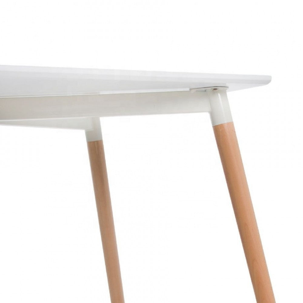 Четыре ножки сделаны из светлой древесины бука. На ножках есть металлические окончания, с помощью которых можно отрегулировать положение стола на неровном полу.